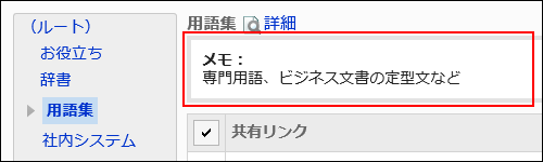 設定すると、設定した共有カテゴリーの画面にメモが表示されます。
