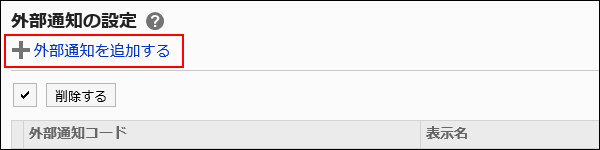 「外部通知の設定」画面で、[外部通知を追加する]をクリックします。
