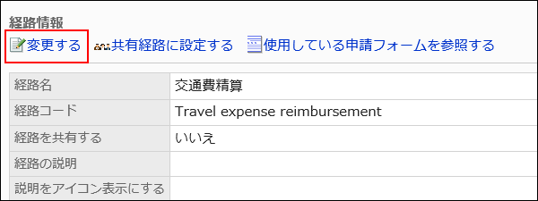 「経路の詳細」画面で、「経路情報」の[変更する]をクリックします。