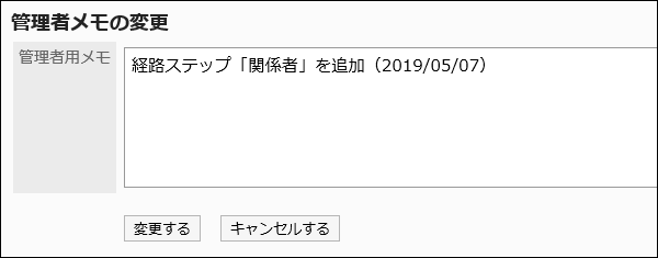 「経路の詳細」画面で、「管理者用メモ」の[変更する]をクリックします。
