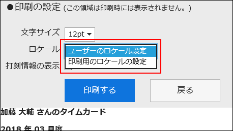 実際にユーザーが印刷する際は、システム管理者が設定するロケールか、自分が設定するロケールのどちらかを選択できます。
