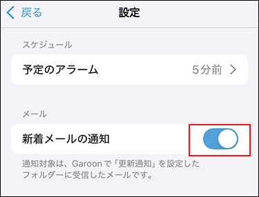 Garoon モバイル for iOSの新着メールの通知機能