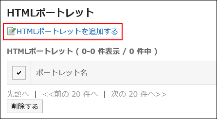 「HTMLポートレット」画面で、[HTMLポートレットを追加する]をクリックします。