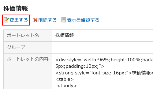 「HTMLポートレットの詳細」画面で、[変更する]をクリックします。