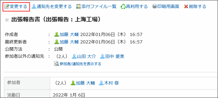 4. 「レポートの詳細」画面で、[変更する]をクリックします。