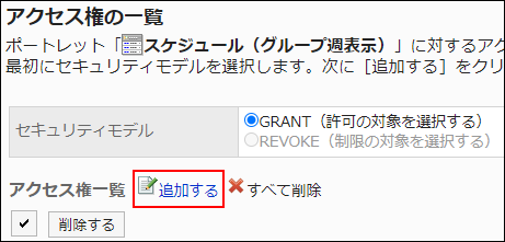 セキュリティモデルが「GRANT(許可の対象を選択する)」の状態で、アクセス権を設定する場合を例に説明します。