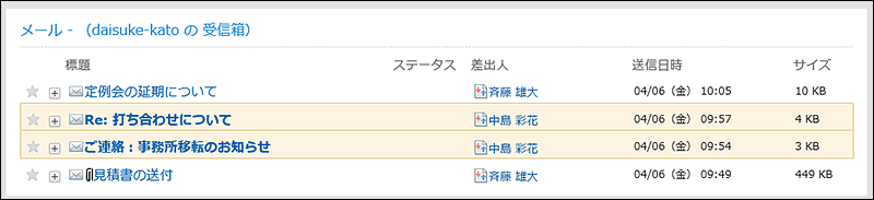 メールの一覧を表示するポートレットです。表示するアカウントやフォルダーを指定できます。