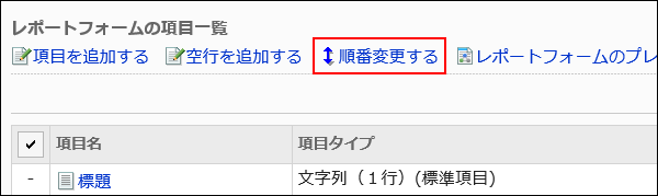 7. 「レポートフォームの詳細」画面で、「レポートフォームの項目一覧」の[順番変更する]をクリックします。