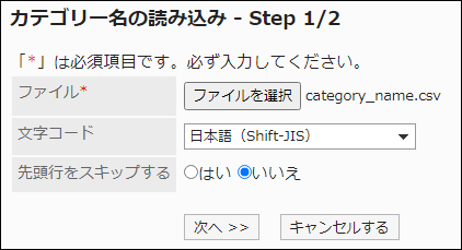 先頭行に、項目名やコメントなどデータ以外の情報が記述されている場合は、「はい」を選択します。