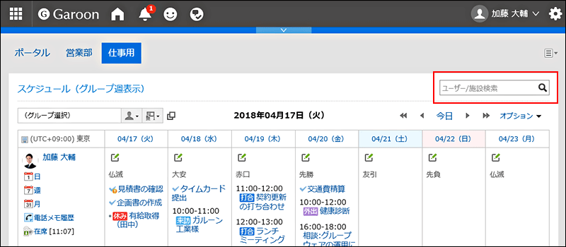 各アプリケーションの画面右上の検索ボックスから検索します。