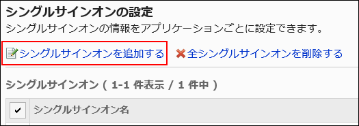 「シングルサインオンの設定」画面で、削除するシングルサインオンのチェックボックスを選択し、[削除する]をクリックします。