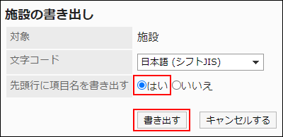 「先頭行に項目名を書き出す」項目で、「はい」を選択し、[書き出す]をクリックします。