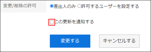 掲示の変更を通知先のユーザーに通知しない場合は、「この更新を通知する」のチェックボックスの選択を外します。
