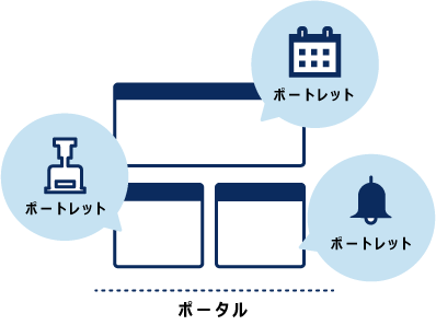 「ポータル」は、Garoonの入り口となるページ(ポータル)に、「ポートレット」と呼ばれる単位でGaroonの機能を配置し、 各機能をかんたんに使えるようにしたアプリケーションです。