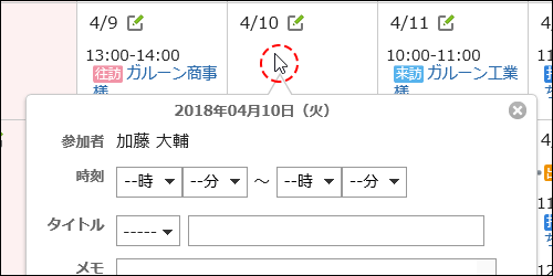 予定欄の空いている領域をドラッグ、またはダブルクリックします。