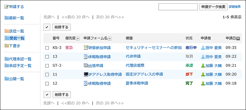 申請の状況にかかわらず、提出済みの申請データが表示されます。
