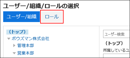 「ユーザー/組織/ロールの選択」画面で、[ロール]をクリックします。