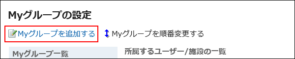 「Myグループの設定」画面で、[Myグループを追加する]をクリックします。
