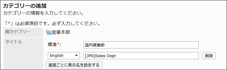 [言語ごとに表示名を設定する]をクリックすると、複数の言語でタイトルを設定できます。