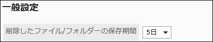 「一般設定」画面の「削除したファイル/フォルダーの保存期間」項目で、保存期間を選択します。