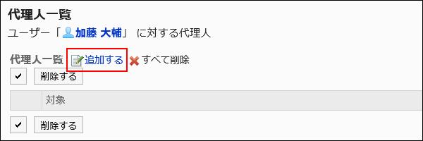7. 「代理人一覧」画面で、[追加する]をクリックします。