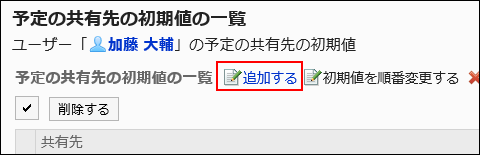 8. 「予定の共有先の初期値の一覧」画面で、[追加する]をクリックします。