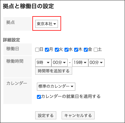 営業日を追加する場合に選択します。指定した日付に就業日のアイコン