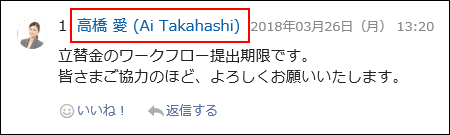英語名は、ユーザー情報の「名前」の「英語表記」に設定されているユーザー名です。