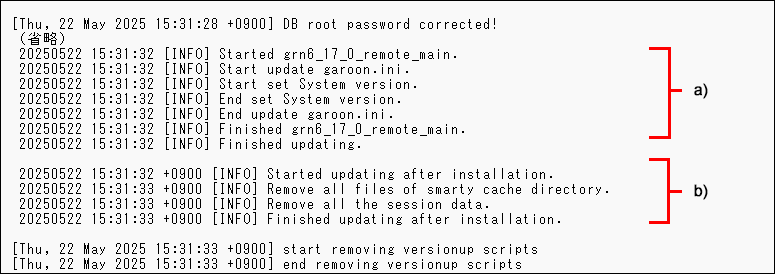 Windows版の場合、次のエラーが出力されることがありますが、バージョンアップは正常に完了しています。