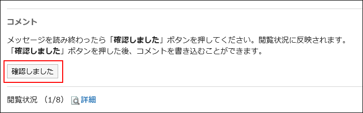 閲覧状況確認が要求されているメッセージの場合、[確認しました]をクリックするとコメントを書き込めます。