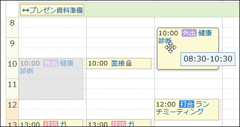 システム管理者の設定によって、ドラッグアンドドロップによる予定の変更機能が使用できない場合があります。
