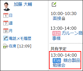 自分が参加している予定にだけ表示されます。また、システム管理者の設定によって、表示されない場合があります。