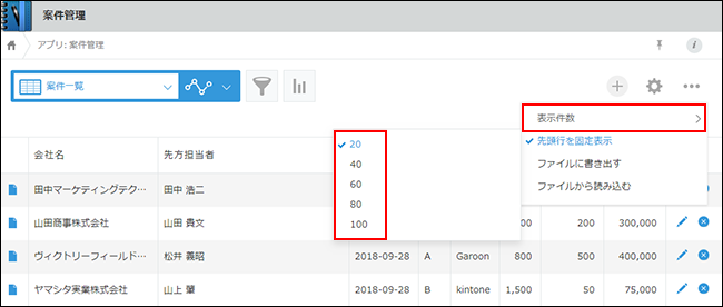 [レコードの一覧]画面で、一覧の表示件数を変更できます。