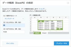 - Excel ファイルの読み込み範囲を指定