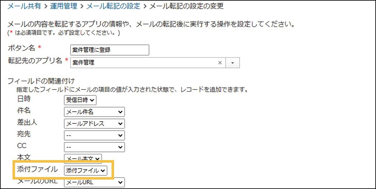 - メール共有オプションメールの転記を自動で行えるように