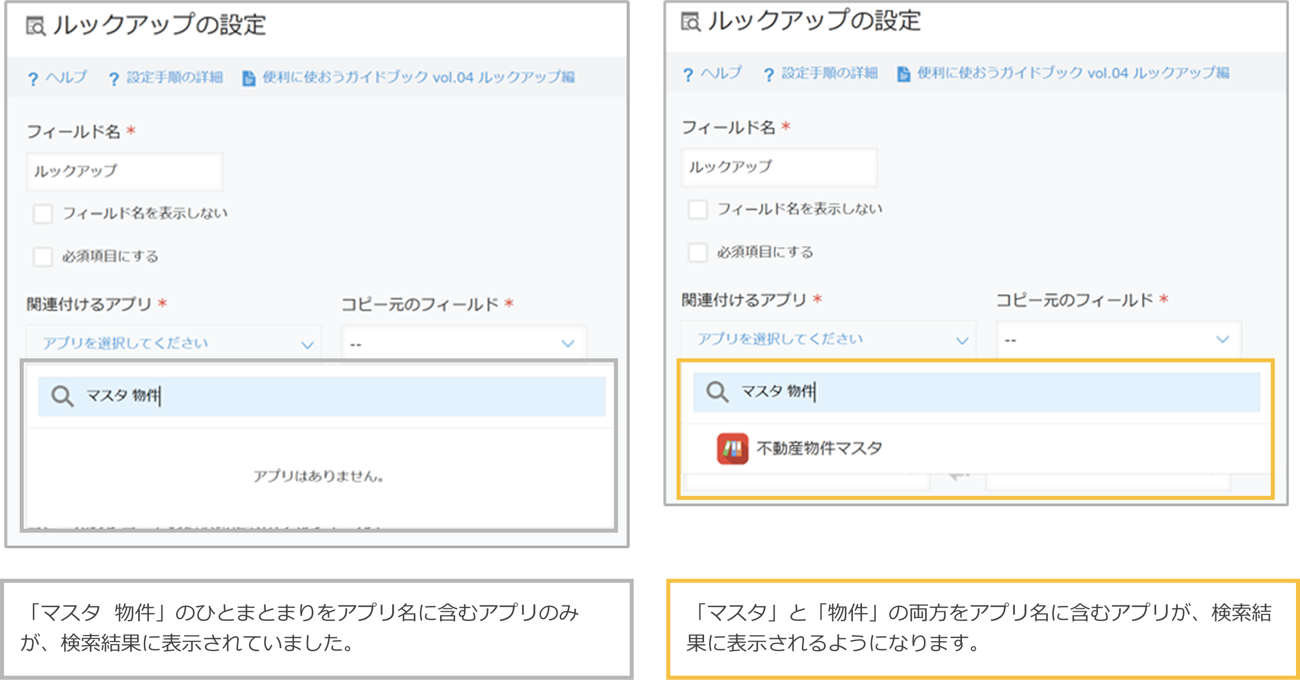 - アプリ間のルックアップ機能を追加