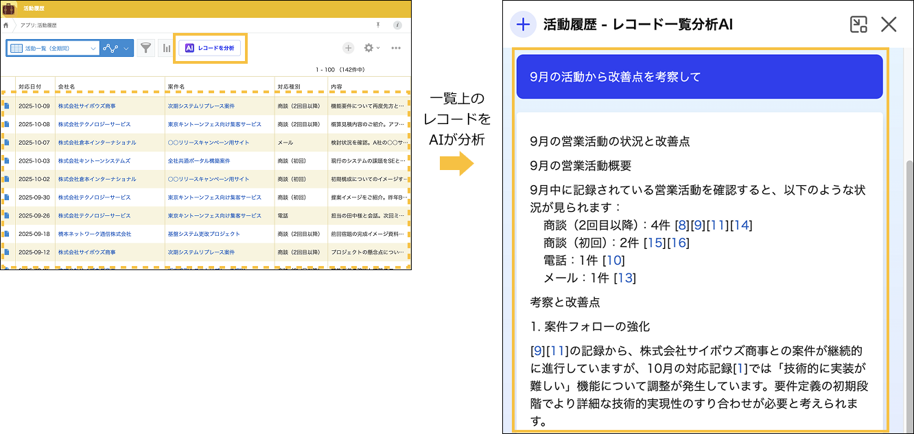 レコード一覧上のデータをAIで分析や要約ができる機能を提供開始しました。
