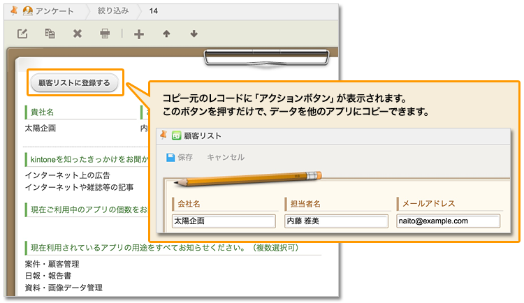- アンケートに入力された会社名や氏名を、顧客リストにコピーする