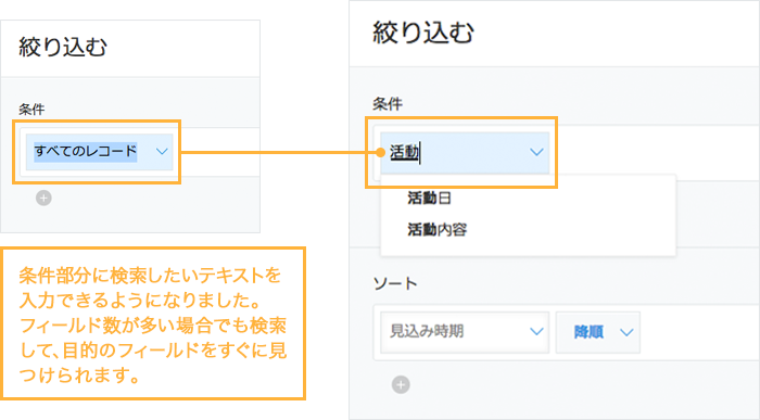 レコードの絞り込み画面でフィールド名を検索して指定できるようになりました。