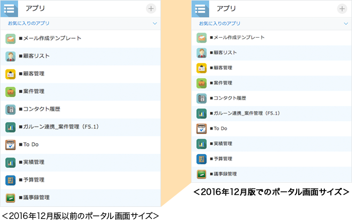ポータル画面のフォントサイズや行間の調整により、ポータル画面により多くの情報が表示されるようになりました。