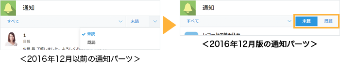 通知パーツの未読/既読切り替えボタンの変更