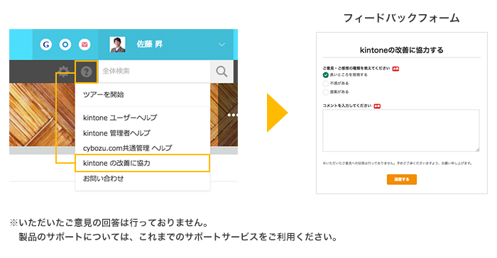kintone についてのフィードバックをサイボウズに送信できるようになりました。