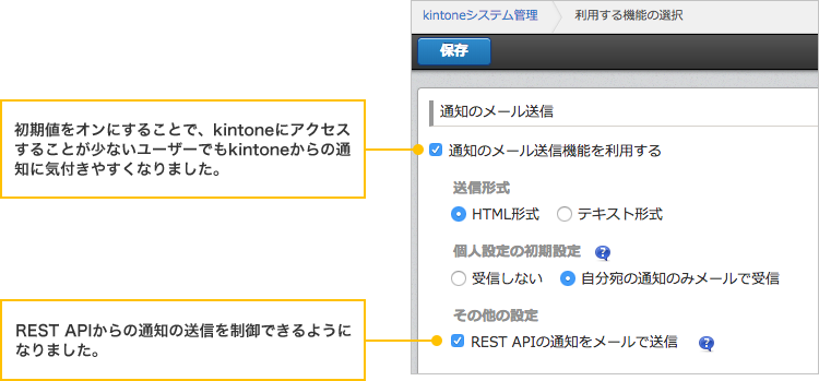 この改善に伴い、REST APIからの通知メールの設定項目を追加しました。