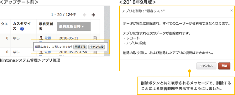 アプリ管理画面のアプリ一覧から誤ってアプリを削除しないようメッセージを改善しました。