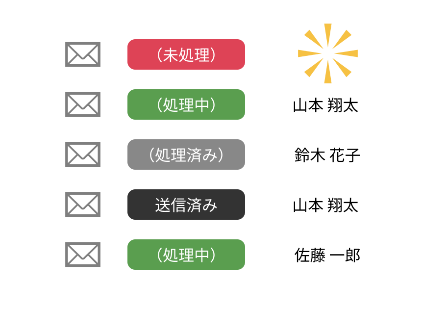 kintone で代表メールを管理し、メール対応業務を複数人で分担して進められるようにするための機能を搭載しています。