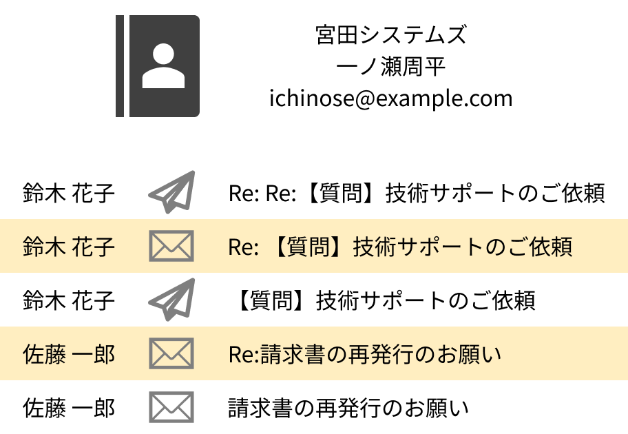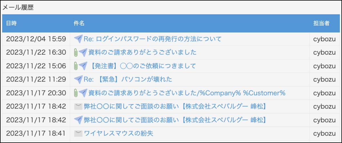 本オプションを利用すると、kintoneと代表メールを連携することができ、既存の業務データに加えてメール情報もkintoneで管理することができます。これにより、メール対応業務を複数人で効率的に分担することが可能となります。
