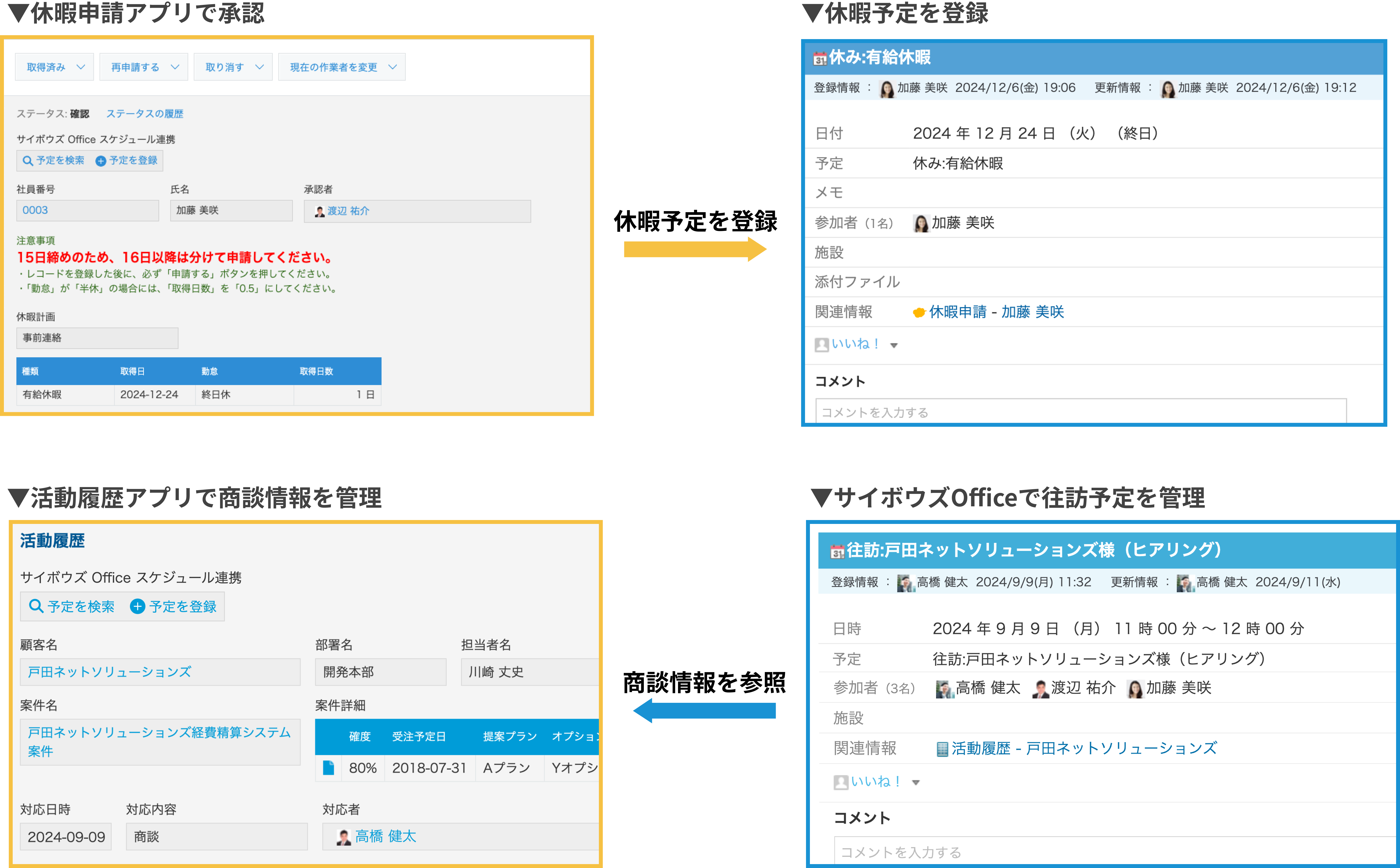 ■利用例3:有給休暇を予定に登録、商談情報を往訪予定から参照