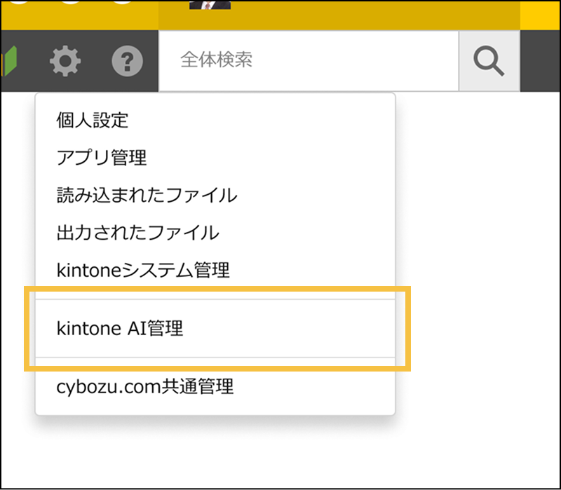 kintone AI管理ページを設定できるのはkintoneシステム管理者のみです。
