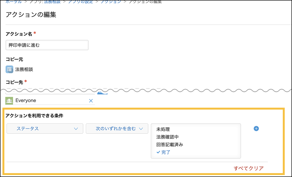 「アクションを利用できる条件」が新たに設定できるようになっています。