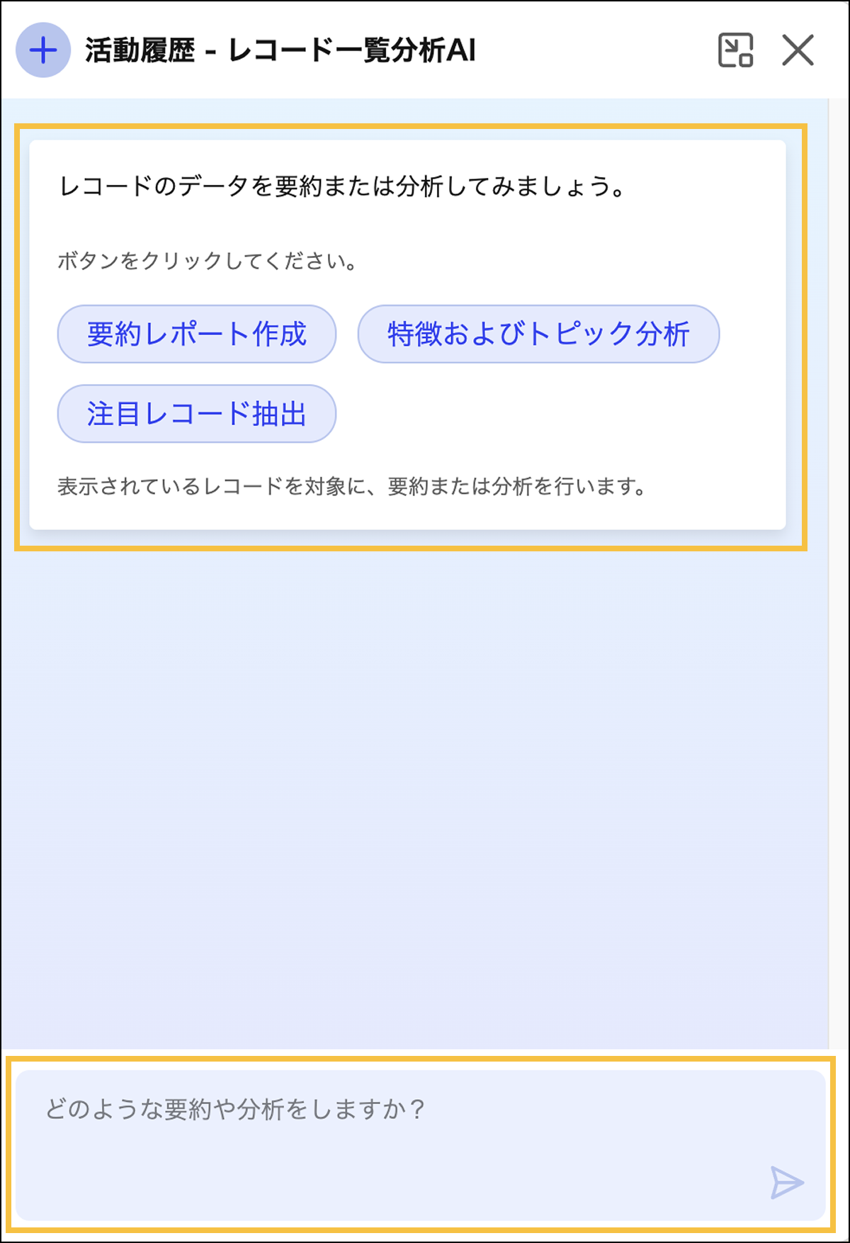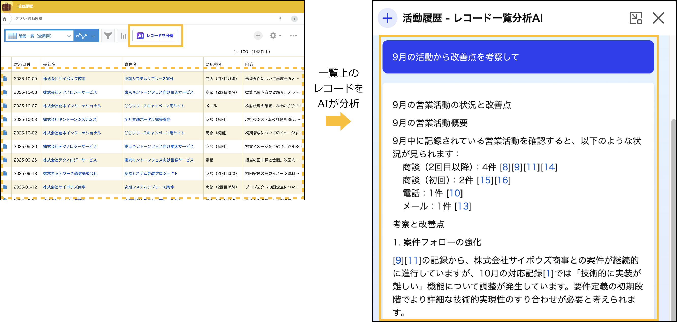 レコード一覧分析AI:レコード一覧上のデータをもとに分析や要約ができる機能